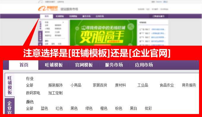 阿里巴巴建站服务市场市场上的模版暂时分2种,一种是旺铺模版,另外一种是官网模版。
