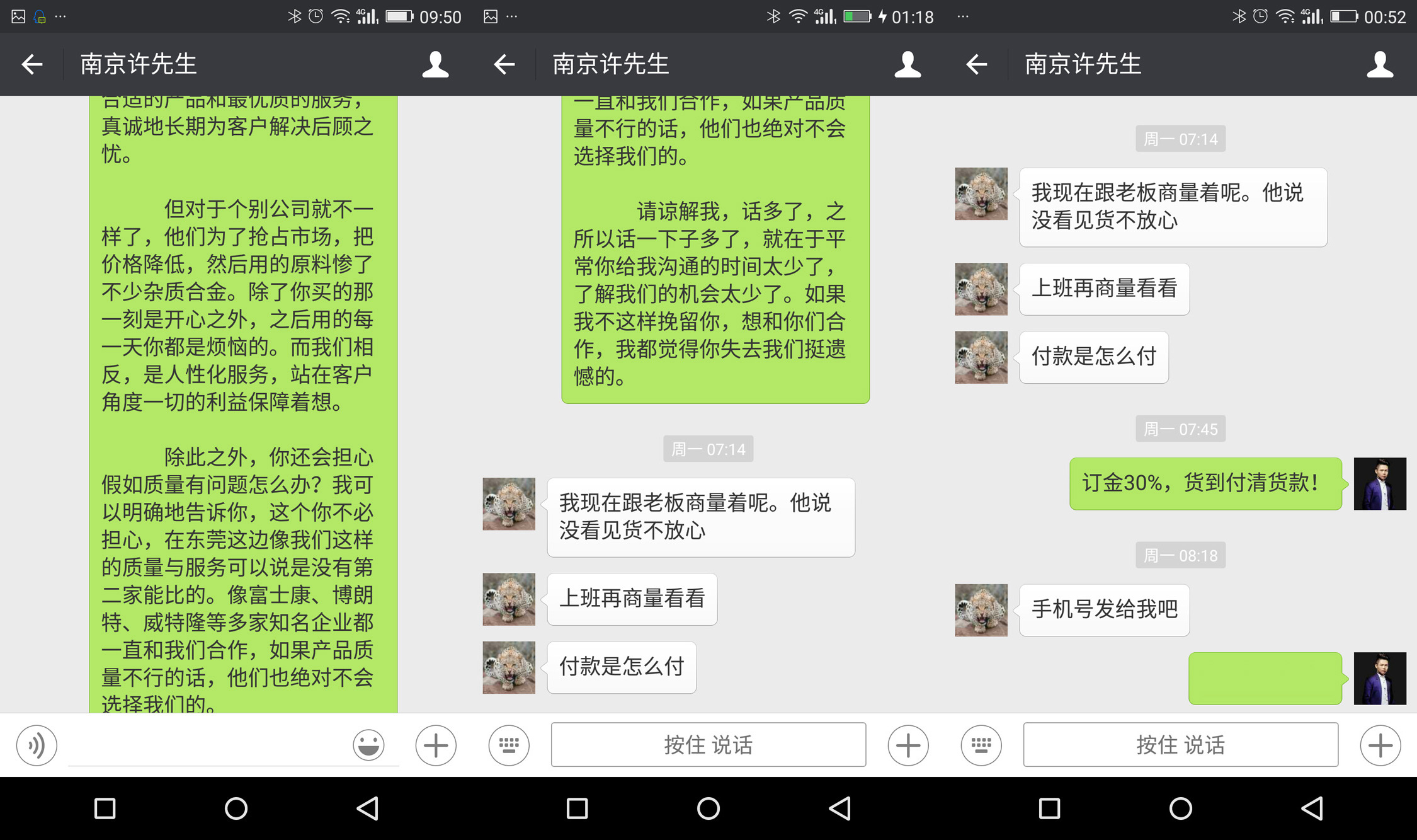 首先,我们先认可客户的想法,换个角度我们去采购也会是这样想。这个时候,我们要在物流运输方面去入手。找一个比较靠谱的物流公司,你跟客户说,可以先转定金30%,尾款由物流公司代收就好了。如果你看过货后不达标不满意,或者在用的过程中出现质量问题,都可无条件退换货还赔你10%的补偿,不用他承担一分钱运费。一定要用肯定的语气和客户说,不带一点拖泥带水。我相信,这个时候客户是不会拒绝你的。